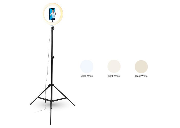 - LED light ring with 3 levels of white and 10 levels of adjustable brightness
